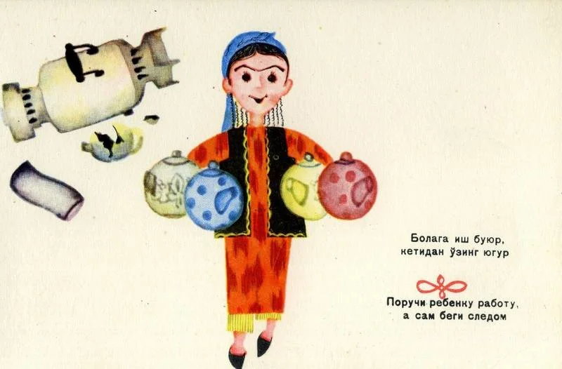 Очень полезный совет: “Болага буюр–орқасидан юғур”–”Поручи ребенку – и пойди за ним”. Сколько раз нам приходилось, попросив ребенка что-то сделать, что-то принести–потом самому пойти и сделать, найти!