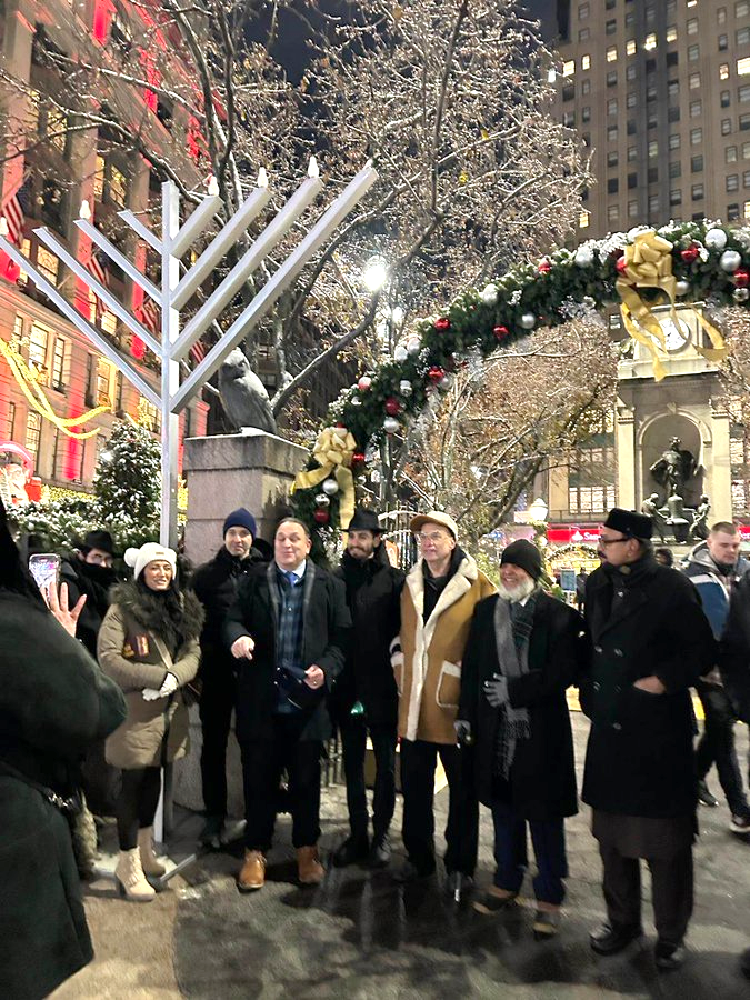 Экс-сенатор Хурам Монсеррат с раввином Йехудой Коэном принял участие в церемонии зажигания первой свечи на меноре в честь праздника Хануки на площади Геральд-сквер в Нью-Йорке. Вместе с ним присутствовали имамы Кази Каюм и Мохаммед Рашид, которые выразили свою солидарность и разделили радость праздника с еврейской общиной.