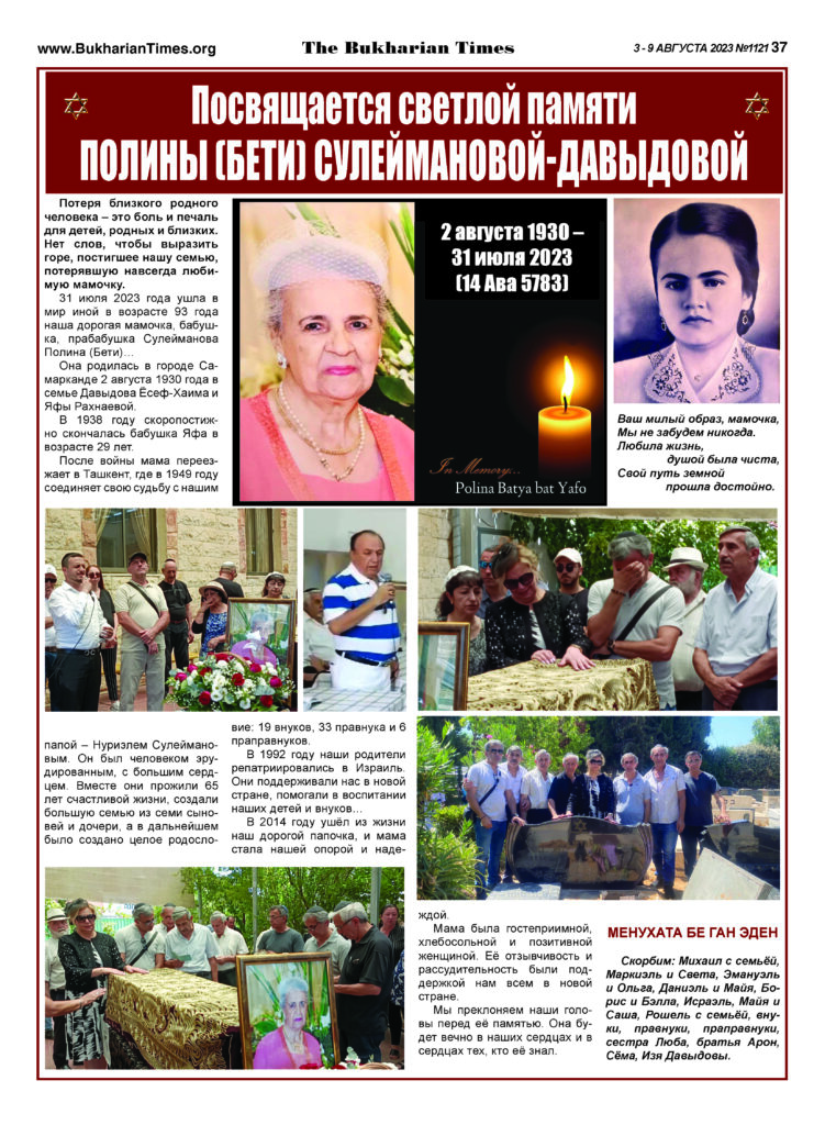 Посвящается светлой памяти ПОЛИНЫ (БЕТИ) СУЛЕЙМАНОВОЙ-ДАВЫДОВОЙ