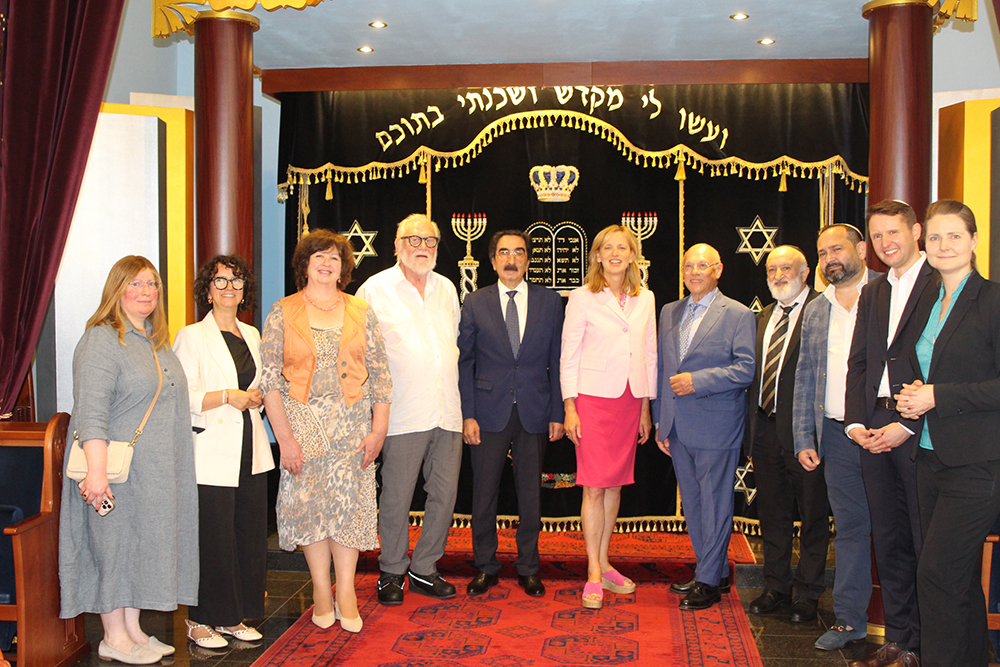 Главный раввин общины, Йоханан Якобов-Коэн, ответил на вопросы министра о религиозной жизни, объяснил значение миквы, праздников и обрядов, а также роль синагоги в жизни современной еврейской общины. Он подчеркнул, что традиция и вера неразрывны, и именно это сочетание помогает бухарским евреям сохранять свою идентичность в многообразном немецком обществе.