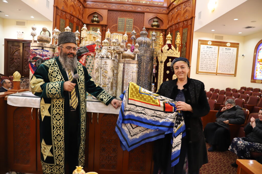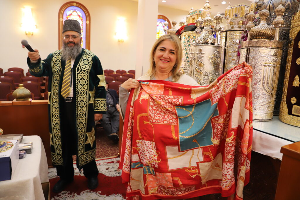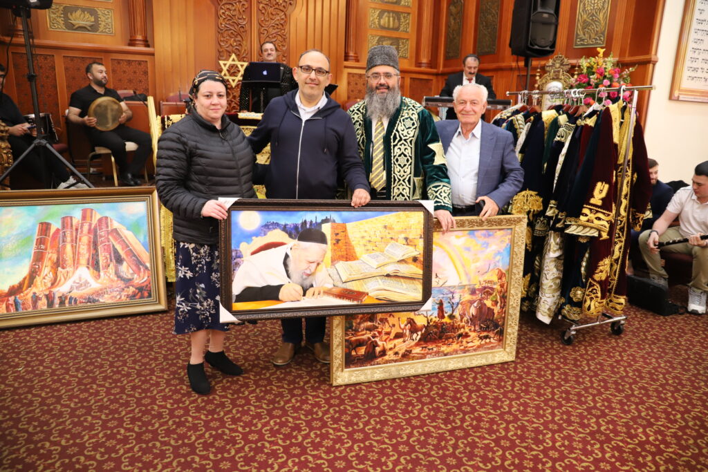 В ночь Симхат Торы раббай Барух Бабаев был ведущим вечера и на “On line” провёл своеобразный аукцион. Распродавали джома для мужчин, женщин и бар-мицва боев, мезузы, платки, завязанные на Сефар Тору, подушки для новорождённых (болишти мицво), картины на иудейские темы. Все это прихожане общины покупали с большим желанием.
