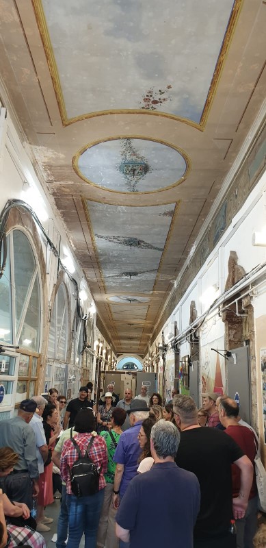 All the ceilings on the upper floor are flat and decorated with rich murals painted by the famous muralist S. Melnick. The paintings in the building include landscapes of the Holy Land alongside European landscapes and inscriptions in Hebrew.